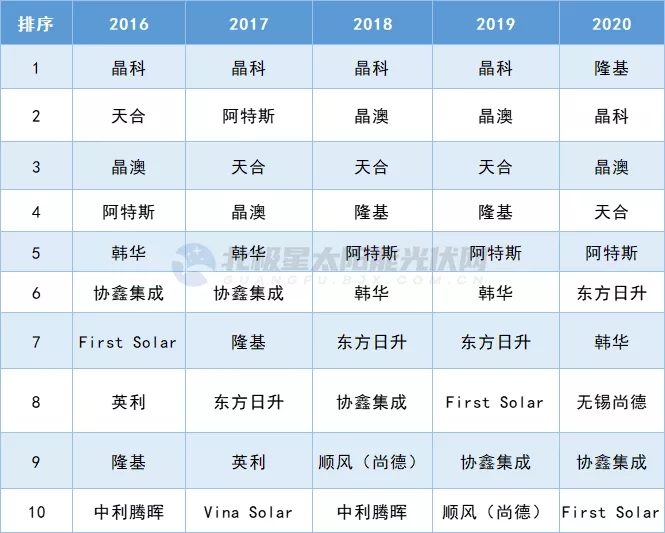 注:上述排行根據(jù)中國(guó)光伏行業(yè)協(xié)會(huì)數(shù)據(jù)整理,排名僅供參考