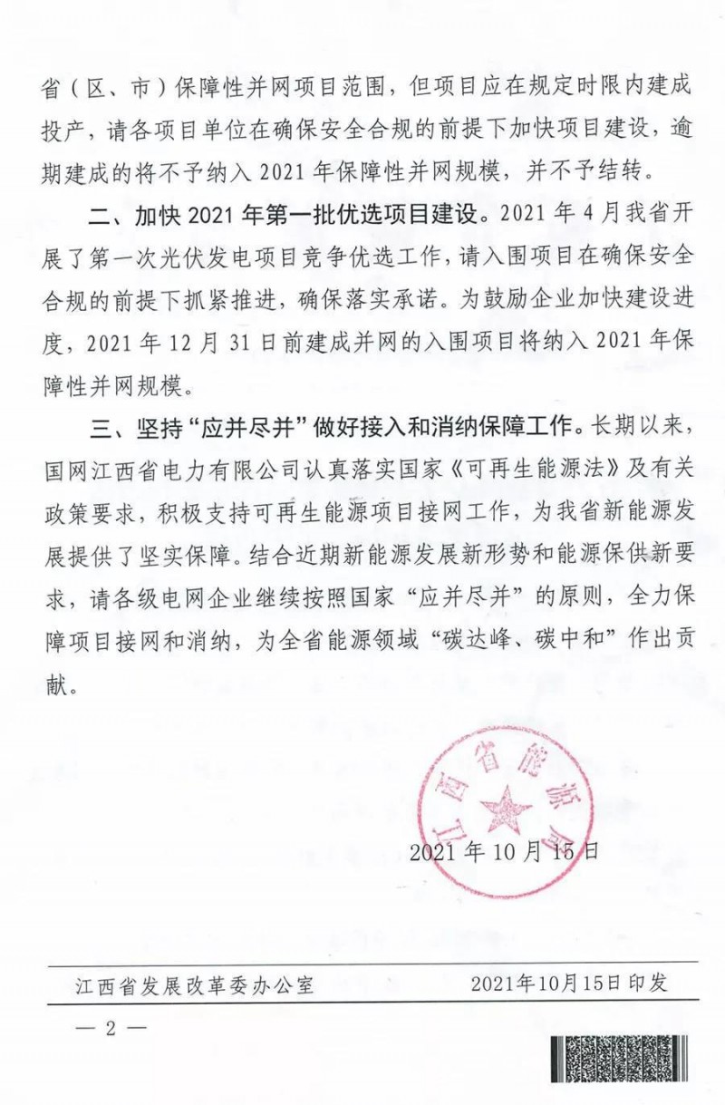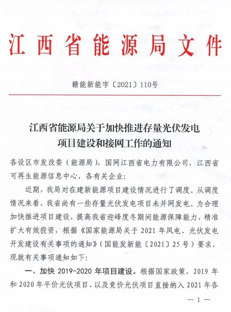 江西要求加快存量光伏項(xiàng)目建設(shè),逾期將不納入2021年保障性并網(wǎng)規(guī)模