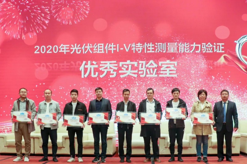 此次會議對常熟阿特斯陽光電力科技有限公司光伏測試中心、常州亞瑪頓股份有限公司中心實驗室、滁州隆基樂葉光伏科技有限公司檢測中心、東方日升新能源股份有限公司實驗室、海寧正泰新能源科技有限公司光伏檢測中心、合肥晶澳太陽能科技有限公司實驗室、環(huán)晟光伏(江蘇)有限公司檢測實驗室、江蘇隆基樂葉光伏科技有限公司檢測中心、江蘇賽拉弗光伏系統(tǒng)有限公司產(chǎn)品檢測中心、晉能清潔能源科技股份公司實驗中心、晶科能源股份有限公司檢測中心(江西上饒)、晶科能源股份有限公司檢測中心(浙江海寧)、上海晶澳太陽能科技有限公司檢測中心、泰州隆基樂葉光伏科技有限公司檢測中心、泰州中來光電科技有限公司檢測中心、通威太陽能(合肥)有限公司光伏實驗中心、無錫尚德太陽能電力有限公司光伏產(chǎn)品檢驗實驗室、張家港協(xié)鑫集成科技有限公司檢測中心、浙江隆基樂葉光伏科技有限公司檢測中心、浙江正泰新能源開發(fā)有限公司光伏檢測中心、中建材浚鑫科技有限公司光伏產(chǎn)品檢測中心、中節(jié)能太陽能科技(鎮(zhèn)江)有限公司,共計22家實驗室,頒發(fā)了“2020年光伏組件I-V特性測量能力驗證 優(yōu)秀實驗室”獎,對東方日升新能源股份有限公司實驗室、海寧正泰新能源科技有限公司光伏檢測中心、合肥晶澳太陽能科技有限公司實驗室、上海晶澳太陽能科技有限公司檢測中心,共計4家實驗室,頒發(fā)了“CTC國檢集團優(yōu)秀合作實驗室”獎。