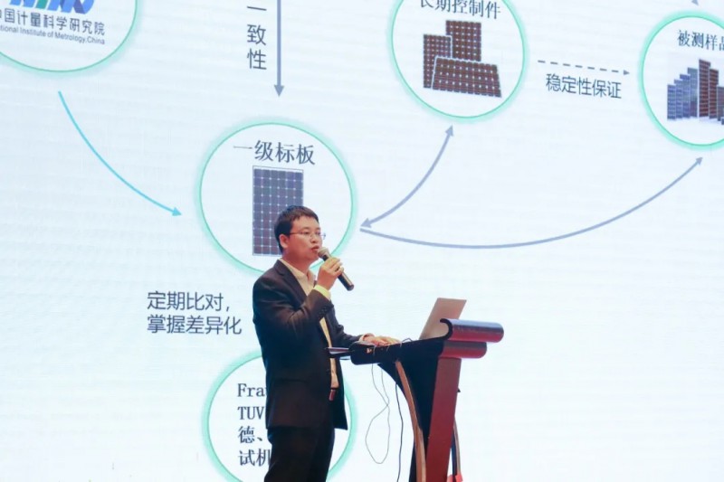中國計量院光學(xué)所室主任助理蔡川,針對光伏行業(yè)常見的功率測試,分享了《太陽模擬器特性對光伏組件光電性能測試》的報告,提出了光伏組件光電性能測試的重要性,論述了光伏量值傳遞溯源體系,最后針對太陽模擬器特性對光伏組件光電性能測試影響的因素進行了分析。