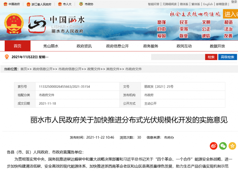 為貫徹落實黨中央、國務(wù)院推進碳達峰碳中和重大戰(zhàn)略決策部署和習(xí)近平總書記關(guān)于“四個革命、一個合作”能源安全新戰(zhàn)略,進一步加快構(gòu)建清潔低碳、安全高效的現(xiàn)代能源體系,加快推進浙西南革命老區(qū)和山區(qū)縣高質(zhì)量綠色發(fā)展,助力生態(tài)產(chǎn)品價值實現(xiàn)機制示范區(qū)、城鄉(xiāng)共同富裕先行區(qū)建設(shè),根據(jù)國家和浙江省關(guān)于加快光伏應(yīng)用發(fā)展有關(guān)要求和整縣(市、區(qū))推進分布式光伏規(guī)?;_發(fā)試點工作部署,現(xiàn)就推動我市分布式光伏規(guī)?;_發(fā)提出如下意見。