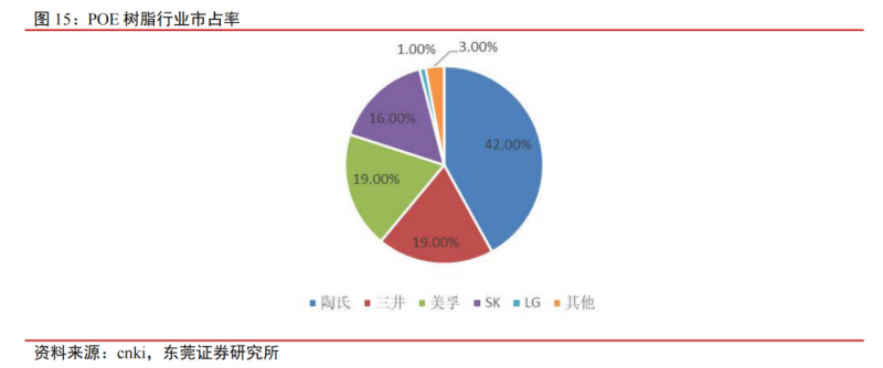 目前,陶氏化學(xué)以42%的市場(chǎng)份額,成為全球排名第一的POE樹脂龍頭公司,三井化學(xué)、美孚公司均以19%的份額分列二三位。
