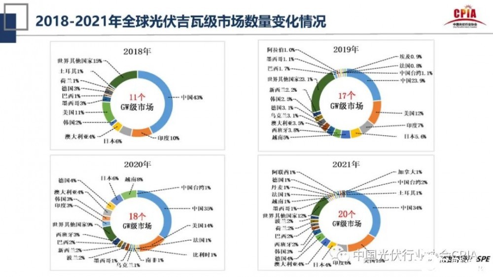 王勃華還指出,根據(jù)統(tǒng)計(jì),2018年-2021年全球光伏吉瓦級(jí)市場(chǎng)數(shù)量達(dá)20個(gè),根據(jù)預(yù)測(cè),2022年將達(dá)到26個(gè)。王勃華表示,光伏吉瓦級(jí)市場(chǎng)的增加,增強(qiáng)了我們?cè)趪?guó)際貿(mào)易中抗沖擊能力和抗打擊能力。