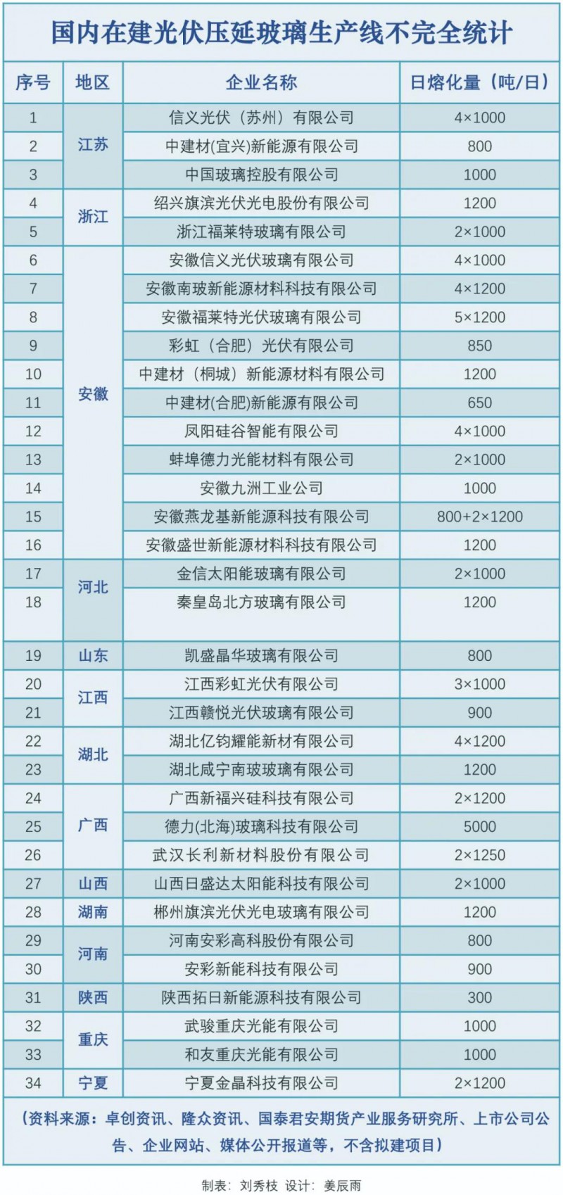 在江西,彩虹新能源規(guī)劃建設(shè)10座1000噸/日的光伏壓延玻璃生產(chǎn)線,3座已開工;在安徽和江蘇,信義光能各有4座1000噸/日的生產(chǎn)線正在建設(shè);廣西北海正加快打造硅科技及光伏玻璃產(chǎn)業(yè)全產(chǎn)業(yè)鏈集群,云南曲靖提出要打造“世界光伏之都”……