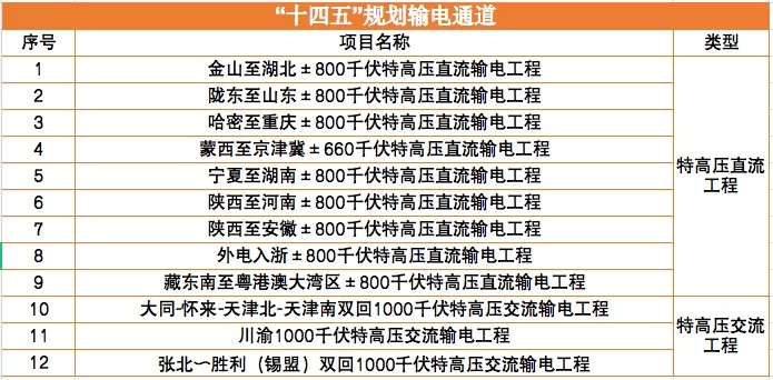 除上述12條特高壓外,結合可再生能源規(guī)劃以及送端區(qū)域的可再生能源資源稟賦和建設條件,“十四五”期間,仍將新增輸電通道以及配套電源規(guī)模。