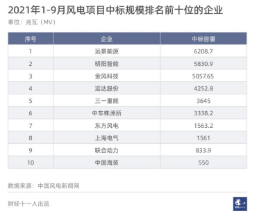 圖2:2021年1-9月風(fēng)電項目中標(biāo)統(tǒng)計情況