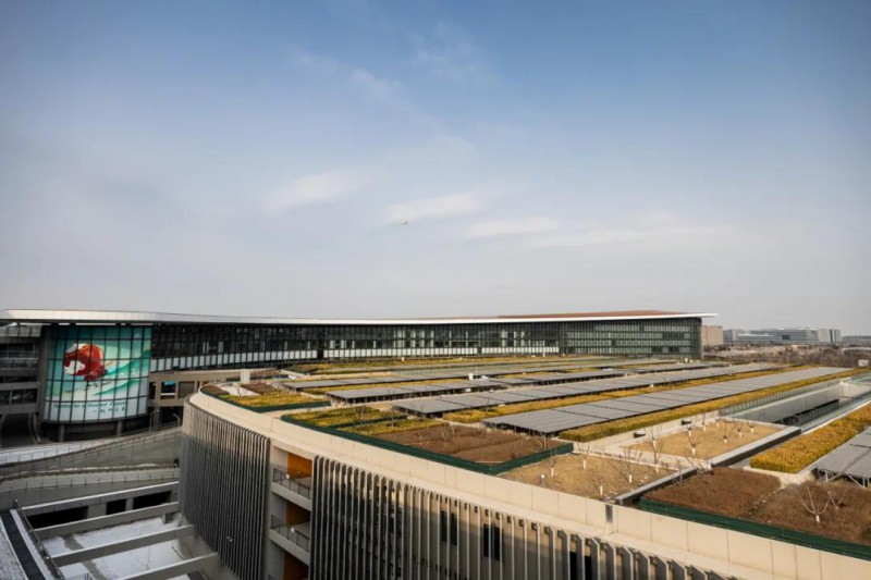 大興機場充分利用當(dāng)?shù)啬茉捶A賦,通過地源熱泵、光伏發(fā)電、污水源熱泵等多種形式實現(xiàn)規(guī)劃可再生能源占總能耗比例16%以上。建成全球在機場領(lǐng)域最大的多能互補耦合式地源熱泵系統(tǒng),供能面積達(dá)到257萬平米。在停車樓、貨運區(qū)及飛行區(qū)側(cè)向跑道旁等區(qū)域建設(shè)太陽能光伏系統(tǒng),總裝機容量約7MW(兆瓦)。