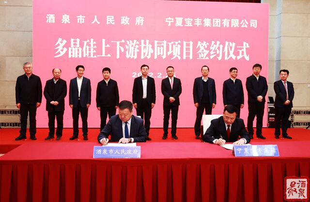 為積極響應(yīng)國(guó)家“碳中和、碳達(dá)峰”重大戰(zhàn)略,搶抓政策機(jī)遇和發(fā)展紅利,2月25日下午,酒泉市與寧夏寶豐集團(tuán)在蘭州簽訂《多晶硅上下游協(xié)同項(xiàng)目投資合作協(xié)議》。