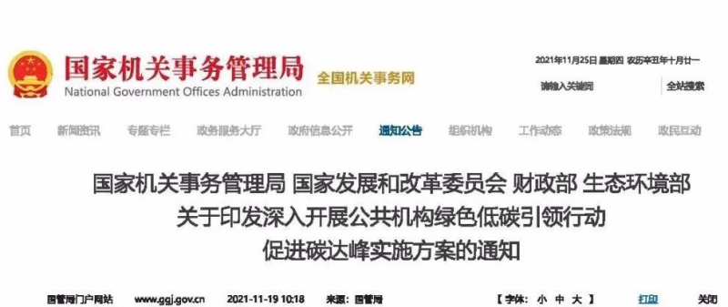 國家機(jī)關(guān)事務(wù)管理局、國家發(fā)改委、財政部、生態(tài)環(huán)境部發(fā)布關(guān)于印發(fā)深入開展公共機(jī)構(gòu)綠色低碳引領(lǐng)行動、促進(jìn)碳達(dá)峰實施方案的通知。