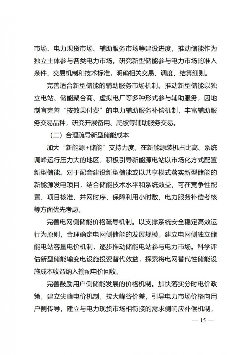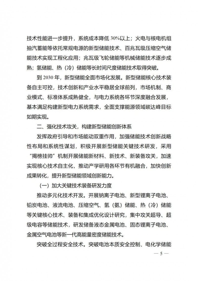一)總體要求。一是指導(dǎo)思想中明確堅(jiān)持以技術(shù)創(chuàng)新為內(nèi)生動力、以市場機(jī)制為根本依托、以政策環(huán)境為有力保障,穩(wěn)中求進(jìn)推動新型儲能高質(zhì)量、規(guī)模化發(fā)展的總體思路。二是基本原則中充分體現(xiàn)了以規(guī)劃為引領(lǐng)、以創(chuàng)新為驅(qū)動、以市場為主導(dǎo)、以機(jī)制為保障、以安全為底線的發(fā)展思路,明確統(tǒng)籌規(guī)劃、因地制宜,創(chuàng)新引領(lǐng)、示范先行,市場主導(dǎo)、有序發(fā)展,立足安全、規(guī)范管理四項(xiàng)發(fā)展原則。三是在發(fā)展目標(biāo)中,更注重通過支持技術(shù)和商業(yè)模式創(chuàng)新、健全標(biāo)準(zhǔn)體系、完善政策機(jī)制等措施,充分激發(fā)市場活力,推動構(gòu)建以需求為導(dǎo)向,以充分發(fā)揮新型儲能價值為目標(biāo)的高質(zhì)量規(guī)?;l(fā)展格局。