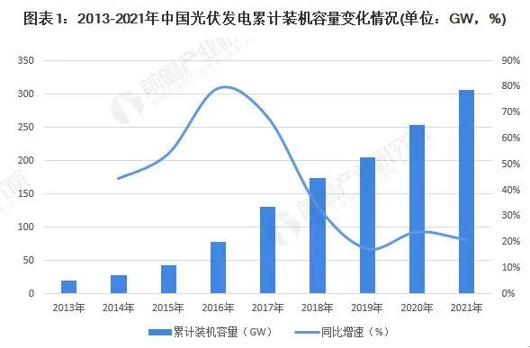 據(jù)國家能源局統(tǒng)計數(shù)據(jù)顯示,2013年以來,我國光伏發(fā)電累計裝機(jī)容量增長迅速。2013年,全國光伏發(fā)電累計裝機(jī)容量僅為19.42GW,到2021年累計突破300GW,連續(xù)7年穩(wěn)居全球首位。