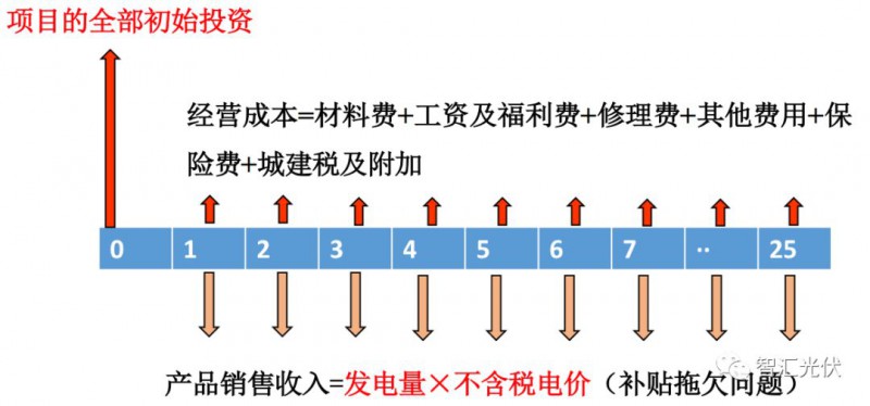 1.“1kW年收益”與收益率線性相關(guān)項目全部投資內(nèi)部收益率,即凈現(xiàn)金流為零時的折現(xiàn)值。項目的凈現(xiàn)金流表示如下圖所示。