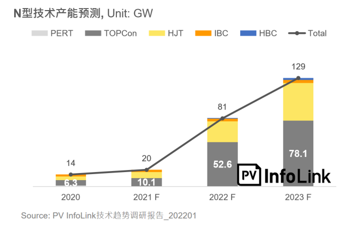 在PVInfolink的技術(shù)趨勢(shì)報(bào)告中,到2022年底,N型產(chǎn)能將突破80GW。但對(duì)于產(chǎn)業(yè)鏈來(lái)說(shuō),這80GW的數(shù)字背后,意味著從多晶硅、硅片、電池到設(shè)備等上下游環(huán)節(jié)的快速匹配,同時(shí)還需要考慮的是成本、出貨與市場(chǎng)。