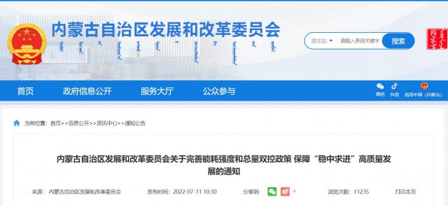 內(nèi)蒙古自治區(qū)發(fā)展和改革委員會(huì)關(guān)于完善能耗強(qiáng)度和總量雙控政策 保障“穩(wěn)中求進(jìn)”高質(zhì)量發(fā)展的通知