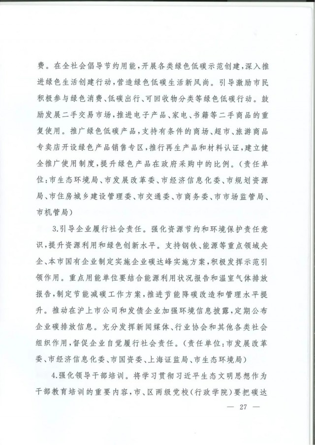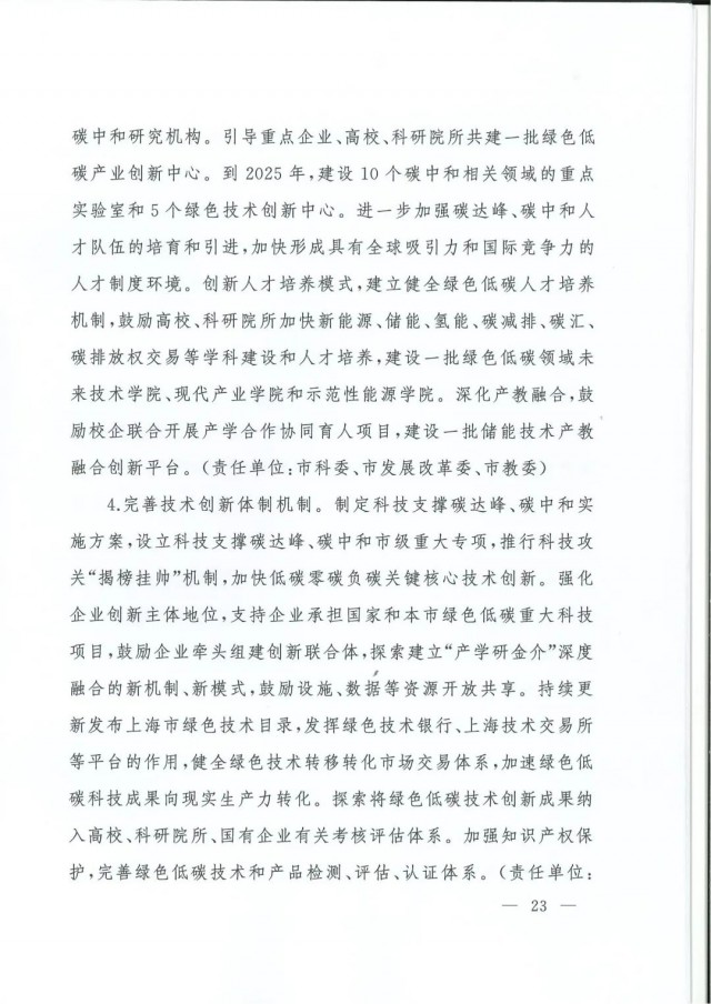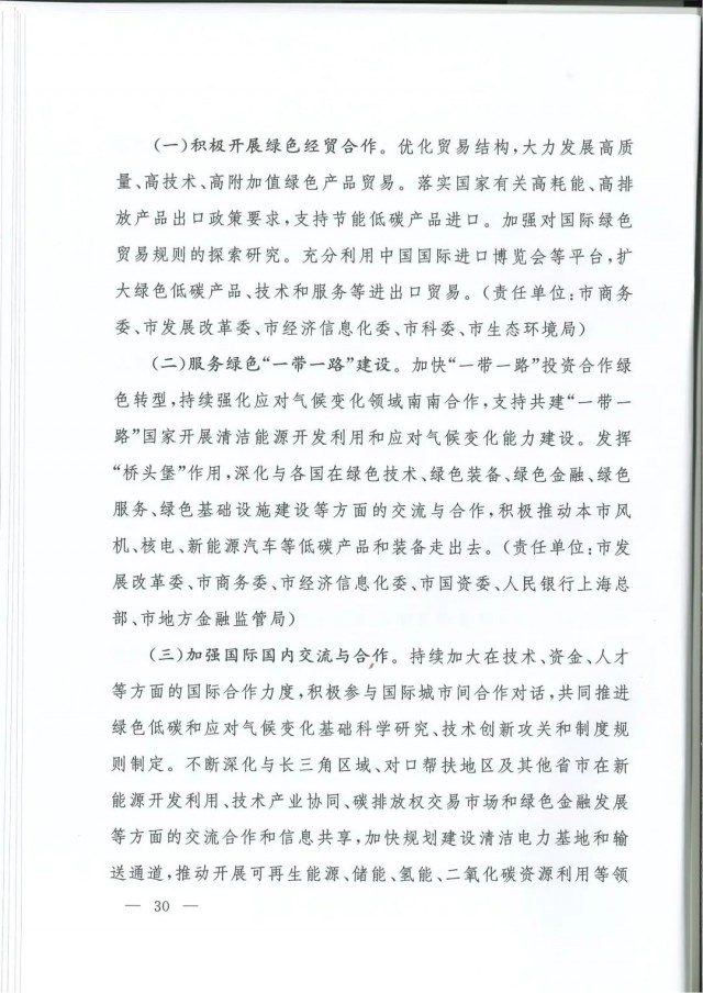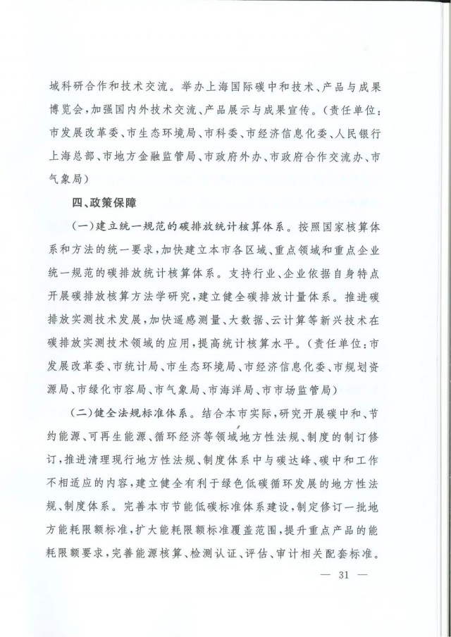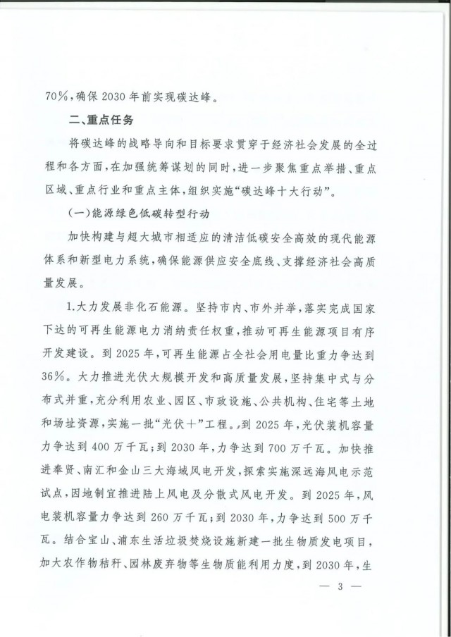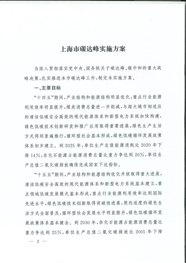 近日,上海市人民政府辦公廳印發(fā)了《上海市碳達峰實施方案》?!斗桨浮访鞔_主要目標(biāo):到2025年,單位生產(chǎn)總值二氧化碳排放確保完成國家下達指標(biāo)。到2030年單位生產(chǎn)總值二氧化碳排放比2005年下降70%,確保2030年前實現(xiàn)碳達峰。并計劃組織實施“碳達峰十大行動”,包括能源綠色低碳轉(zhuǎn)型行動、節(jié)能降碳增效行動、工業(yè)/城鄉(xiāng)建設(shè)/交通領(lǐng)域綠色低碳行動、循環(huán)經(jīng)濟助力降碳行動、綠色低碳科技創(chuàng)新行動、碳匯能力鞏固提升行動、綠色低碳全民行動、綠色低碳區(qū)域行動。