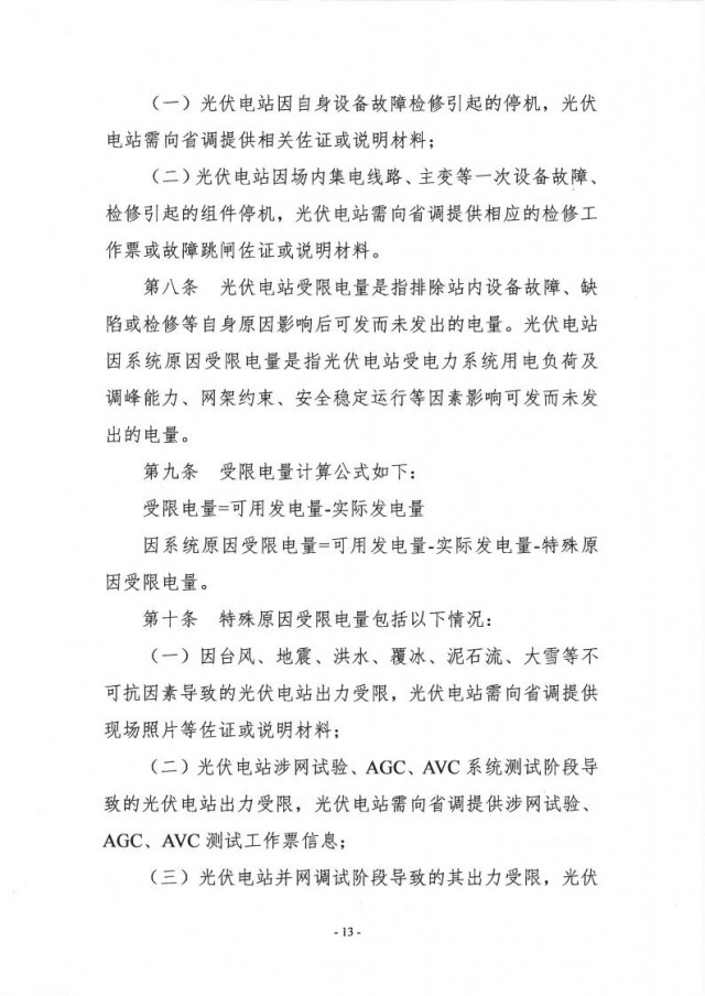 (一)光伏電站因自身設(shè)備故障檢修引起的停機(jī),光伏電站需向省調(diào)提供相關(guān)佐證或說(shuō)明材料;