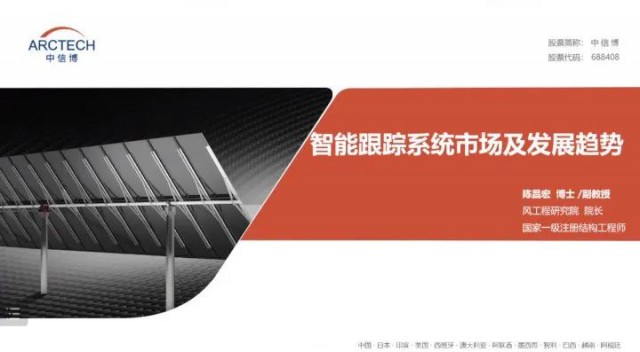 江蘇中信博新能源科技股份有限公司中信博風(fēng)工程研究院院長(zhǎng)陳昌宏博士作智能跟蹤系統(tǒng)市場(chǎng)現(xiàn)狀與發(fā)展趨勢(shì)報(bào)告。陳院長(zhǎng)從全球跟蹤支架市場(chǎng)格局與跟蹤支架技術(shù)發(fā)展趨勢(shì)兩個(gè)方面進(jìn)行了詳細(xì)的介紹。