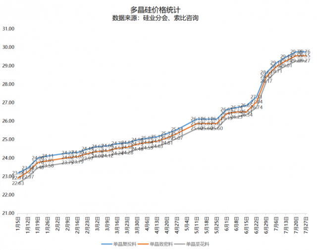 另根據(jù)7月27日,中國(guó)有色金屬工業(yè)協(xié)會(huì)硅業(yè)分會(huì)公布了太陽(yáng)能級(jí)多晶硅最新價(jià)格: