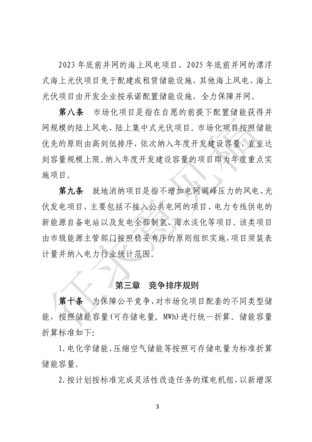 3)2023 年底前并網(wǎng)的海上風電項目、2025 年底前并網(wǎng)的漂浮式海上光伏項目免于配建或租賃儲能設(shè)施,其他海上風電、海上 光伏項目由開發(fā)企業(yè)按承諾配置儲能設(shè)施,全力保障并網(wǎng)。