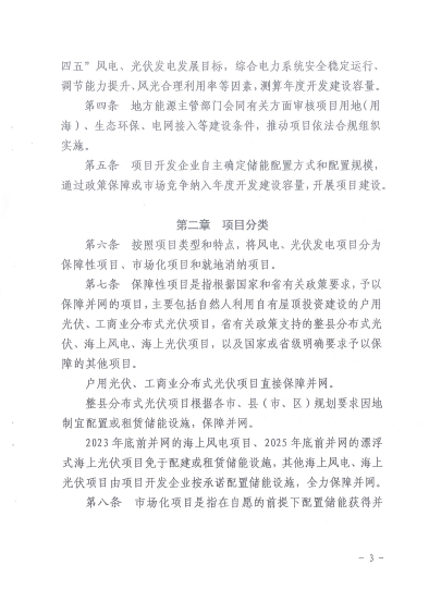8月31日,山東省能源局印發(fā)《山東省風(fēng)電、光伏發(fā)電項(xiàng)目并網(wǎng)保障指導(dǎo)意見(試行)》,文件提出,分類保障風(fēng)光項(xiàng)目并網(wǎng)。按照項(xiàng)目類型和特點(diǎn),將風(fēng)光項(xiàng)目分為保障性項(xiàng)目、市場化項(xiàng)目和就地消納項(xiàng)目。保障性項(xiàng)目主要包括戶用光伏、工商業(yè)分布式光伏項(xiàng)目,省有關(guān)政策支持的整縣分布式光伏、海上風(fēng)電、海上光伏項(xiàng)目,以及國家或省級明確要求予以保障的其他項(xiàng)目。市場化項(xiàng)目是指在自愿的前提下配置儲能獲得并網(wǎng)規(guī)模的陸上風(fēng)電、陸上集中式光伏項(xiàng)目。