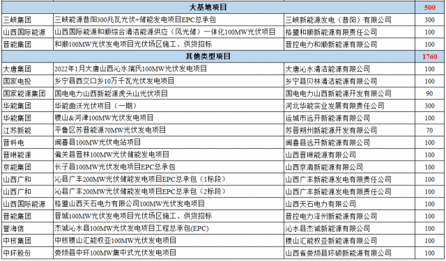 2021年,山西省共下發(fā)了11.41GW光伏項(xiàng)目名單,包括:
