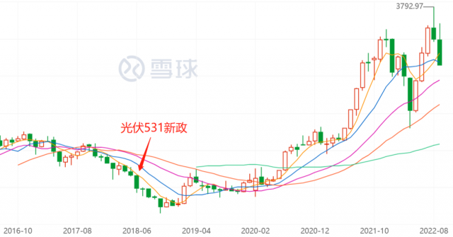 圖:光伏概念指數(shù)(CN:BK0478)周線走勢(shì),來(lái)源:雪球