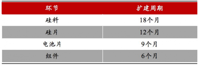 圖:光伏主產(chǎn)業(yè)鏈各環(huán)節(jié)擴(kuò)產(chǎn)周期,來(lái)源:各公司公告,東亞前海證券研究所