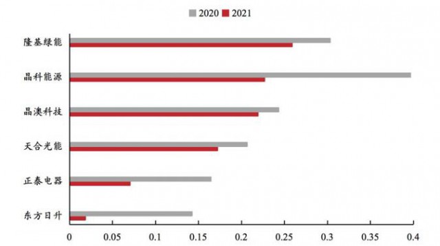 圖:2020-2021組件業(yè)務(wù)單瓦盈利情況(元/W),來(lái)源:Wind,東亞前海證券研究所