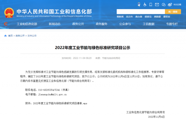 公示時間為2022年11月4日至11月10日。如有異議,可在公示期內(nèi)將書面意見反饋至工業(yè)和信息化部(節(jié)能與綜合利用司)。