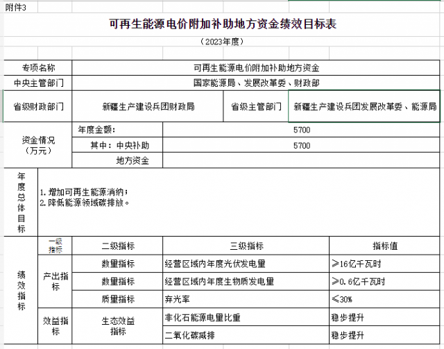 3.可再生能源電價附加補助地方資金績效目標(biāo)表