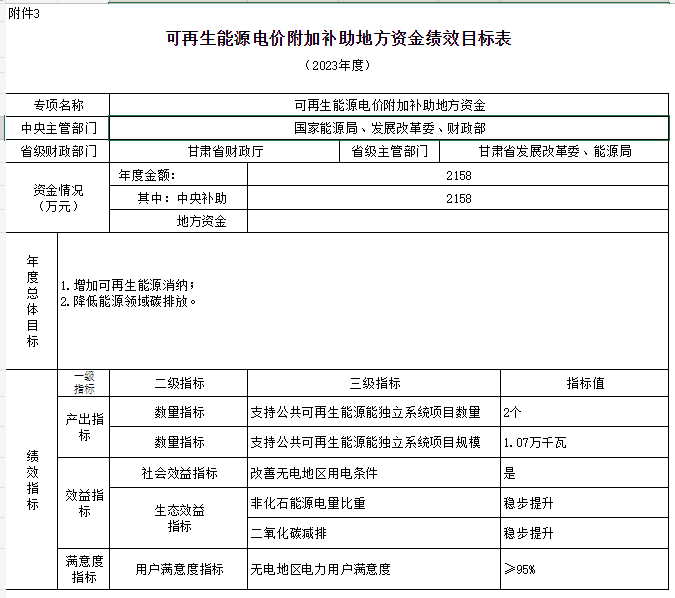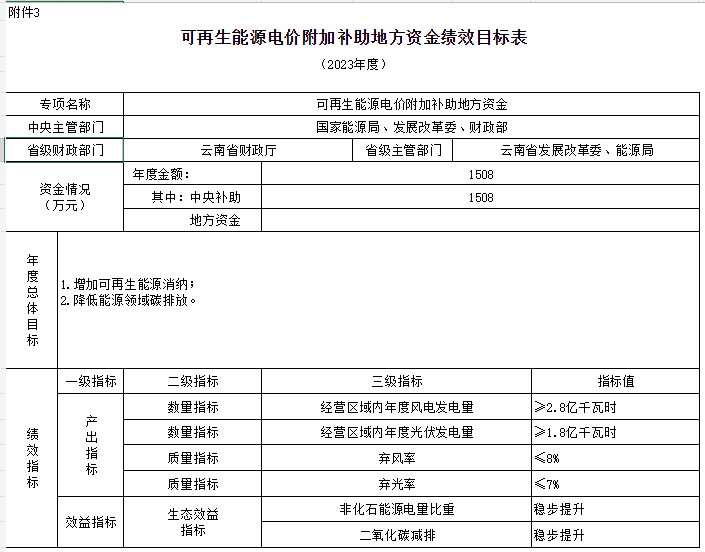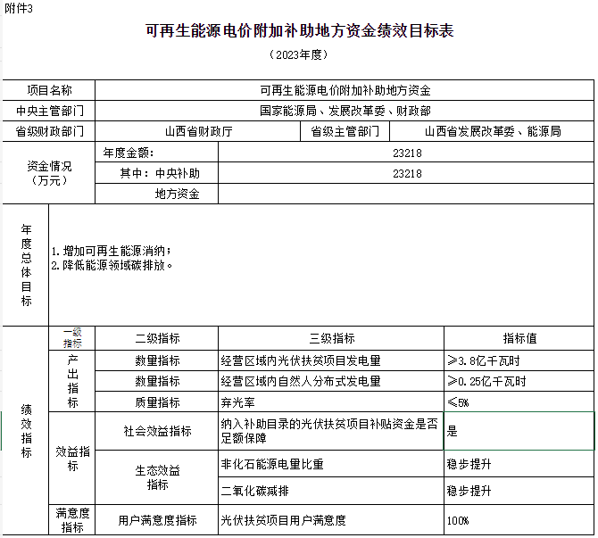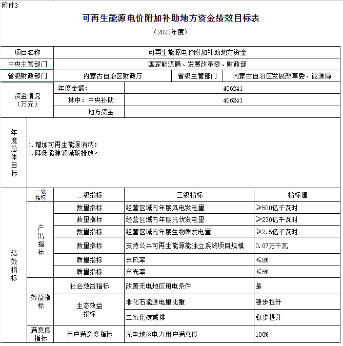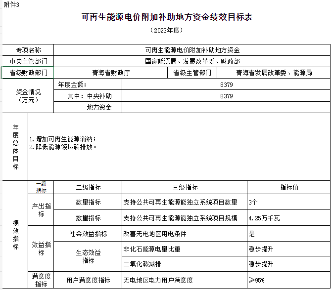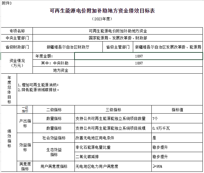 附件:1.可再生能源電價(jià)附加補(bǔ)助地方資金預(yù)算匯總表3.可再生能源電價(jià)附加補(bǔ)助地方資金績(jī)效目標(biāo)表