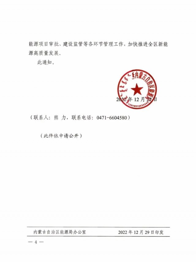 12月29日,內(nèi)蒙古自治區(qū)能源局發(fā)布關(guān)于下放部分市場(chǎng)化并網(wǎng)新能源項(xiàng)目審批權(quán)限的通知,通知指出:自本文印發(fā)之日起,燃煤自備電廠可再生能源替代工程全額自發(fā)自用新能源項(xiàng)目和火電靈活性改造消納新能源項(xiàng)目由盟市能源主管部門組織評(píng)估后審批。