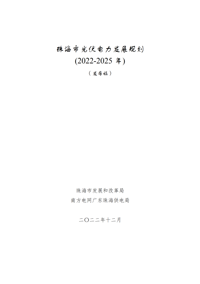 珠海市發(fā)展和改革局關(guān)于印發(fā)《珠海市光伏電力發(fā)展規(guī)劃(2022-2025年)》的通知