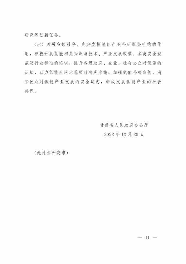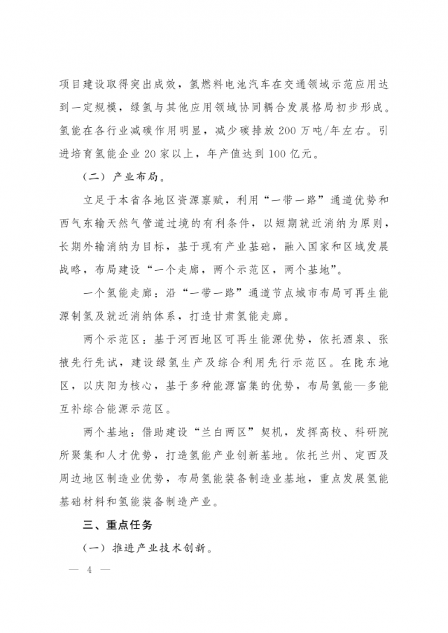 1月3日,甘肅省人民政府辦公廳發(fā)布關(guān)于氫能產(chǎn)業(yè)發(fā)展的指導(dǎo)意見,意見指出,支持在高速公路服務(wù)區(qū)內(nèi)布局建設(shè) “分布式光伏+制氫、儲(chǔ)氫、加氫”一體化示范應(yīng)用。培育 “風(fēng)光發(fā)電+氫儲(chǔ)能”一體化應(yīng)用模式,探索氫儲(chǔ)能與波動(dòng)性可再生能源發(fā)電協(xié)同運(yùn)行的商業(yè)化運(yùn)營(yíng)模式,對(duì)比研究氫儲(chǔ)能與電池儲(chǔ)能、熔鹽儲(chǔ)能等其他儲(chǔ)能方式單獨(dú)或混合儲(chǔ)能的技術(shù)特點(diǎn)和經(jīng)濟(jì)性。