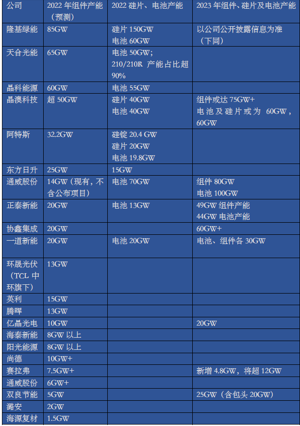 從產能方向看,2022年主要光伏廠商的組件產能已超500GW,今年(2023)必然將是延續(xù)龍爭虎斗的時點。