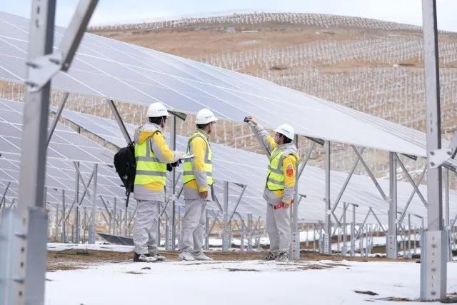 盡管身處海拔4600米的冰天雪地里,柯拉光伏電站的建設者們的內(nèi)心無比熾熱。他們將工程設計之初的3個月“冬歇期”科學轉化為“冬季施工大干期”,在施工車輛的轟鳴往來中,在塵土與雪花齊飛中,開足馬力推進各項工程任務。