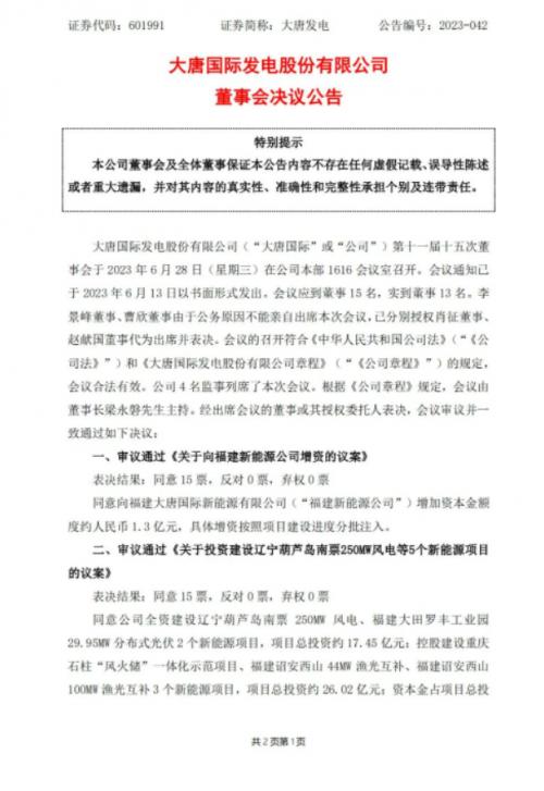 根據(jù)公開資料,大唐國際發(fā)電股份有限公司是中國大唐集團(tuán)公司控股的中外合資企業(yè),2021年,托電、蔚縣基地合計3GW項目獲得國家第一批大型風(fēng)光基地批復(fù)。