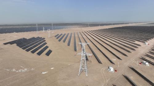 粵水電巴楚光伏項目位于巴楚縣三岔口,該項目總建設用地面積約9.3萬畝,總建設規(guī)模為307萬千瓦,共分五期建設。目前已并網裝機容量67萬千瓦,可減少碳排放約100萬噸。