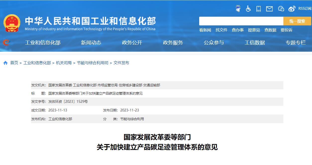 關(guān)于加快建立產(chǎn)品碳足跡管理體系的意見