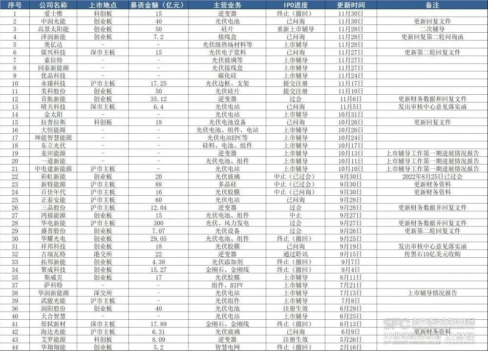 如今,光伏賽道的IPO正在進(jìn)入“冷靜期”。21世紀(jì)經(jīng)濟(jì)報(bào)道記者注意到,從啟動(dòng)IPO工作的企業(yè)數(shù)量上看,光伏行業(yè)在2023年依然活躍。只不過(guò)隨著一家又一家企業(yè)中途退出或停滯,整個(gè)行業(yè)的IPO氛圍大不如前。