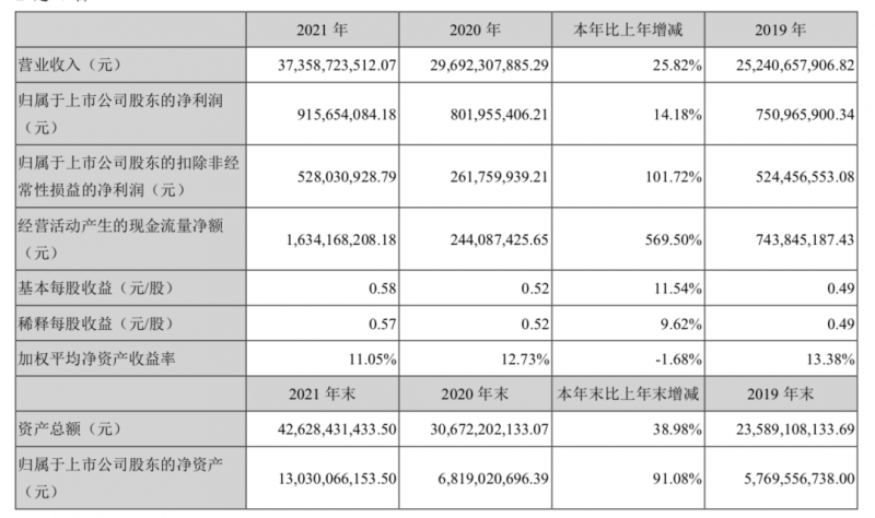 4月12日晚上,欣旺達(dá)公布了2021年的年報(bào)業(yè)績(jī),整個(gè)2021年欣旺達(dá)實(shí)現(xiàn)了全年?duì)I業(yè)收入373.6億元,同比增長(zhǎng)25.82%,歸母凈利潤(rùn)為9.16億元,同比增長(zhǎng)14.18%,扣非凈利潤(rùn)為5.28億元,同比增長(zhǎng)101.7%,毛利率為14.69%,基本持平,凈利率降低了0.4個(gè)百分點(diǎn)到2.29%。