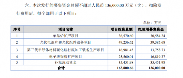 對于募資用途,連城數(shù)控表示,扣除發(fā)行費用后,擬全部用于單晶爐擴產(chǎn)項目、光伏電池片和光伏組件設(shè)備項目、第三代半導體材料碳化硅襯底加工裝備生產(chǎn)項目、電子級銀粉擴產(chǎn)項目及補充流動資金。