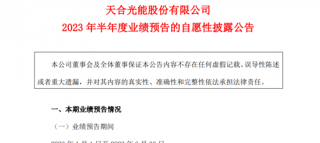 7月25日,天合光能發(fā)布2023年半年度業(yè)績預告,公司預計實現(xiàn)歸母凈利潤33.28-37.52億元,同比增長162.14%-195.61%;預計實現(xiàn)歸母扣非凈利潤35.03-39.27億元,同比增長204.40%-241.32%。
