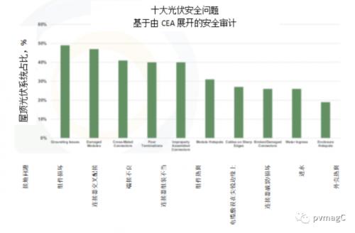 工程服務(wù)公司CEA針對(duì)600多套屋頂光伏系統(tǒng)展開了安全審計(jì),結(jié)果發(fā)現(xiàn)97%的裝置存在重大安全問題。此次檢查范圍覆蓋美國(guó)、英國(guó)、意大利、西班牙、印度、日本、阿拉伯聯(lián)合酋長(zhǎng)國(guó)、澳大利亞、加拿大、墨西哥、捷克共和國(guó)、德國(guó)、波蘭和法國(guó)。