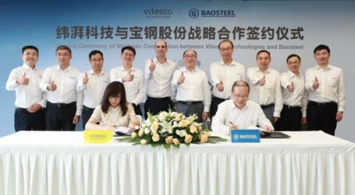 緯湃科技亞太區(qū)采購及供應(yīng)商質(zhì)量管理部總監(jiān)陳珺與寶鋼股份總經(jīng)理助理、營銷中心總經(jīng)理彭俊作為雙方代表簽署戰(zhàn)略合作協(xié)議。緯湃科技中國區(qū)總裁顧睿華(Gregoire Cuny)以及寶鋼股份黨委常委兼副總經(jīng)理胡宏等雙方有關(guān)領(lǐng)導(dǎo)出席并見證了這一里程碑時刻。