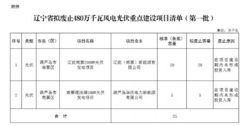 公告稱,遼寧省480萬千瓦風(fēng)電光伏重點(diǎn)建設(shè)項(xiàng)目中存在“核而不建”“建設(shè)滯后”等問題的風(fēng)電光伏項(xiàng)目進(jìn)行了梳理。相關(guān)地市上報(bào)了擬廢止項(xiàng)目清單,經(jīng)我委匯總,擬廢止未按期建成并網(wǎng)的遼能南票200MW光伏發(fā)電項(xiàng)目、南票暖池塘50MW光伏發(fā)電項(xiàng)目等2個(gè)光伏發(fā)電項(xiàng)目共計(jì)25萬千瓦未并網(wǎng)規(guī)模指標(biāo)。