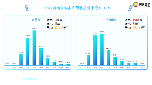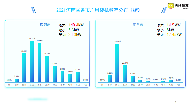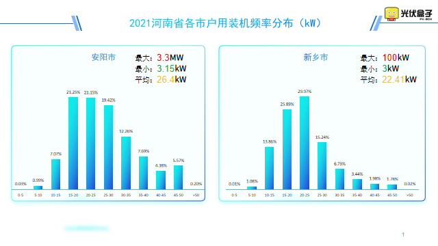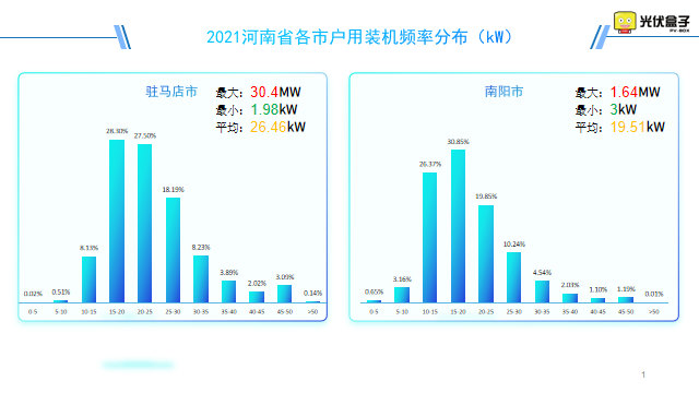 以下是2021年河南省戶用裝機(jī)頻率分布圖,最大單戶裝機(jī)在駐馬店市,為30.4MW。