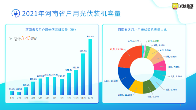 2021年河南戶用光伏安裝3.43GW,12月就安裝了0.81GW。
