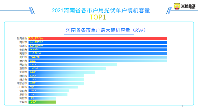 2021河南省各市戶用光伏單戶裝機(jī)容量排行
