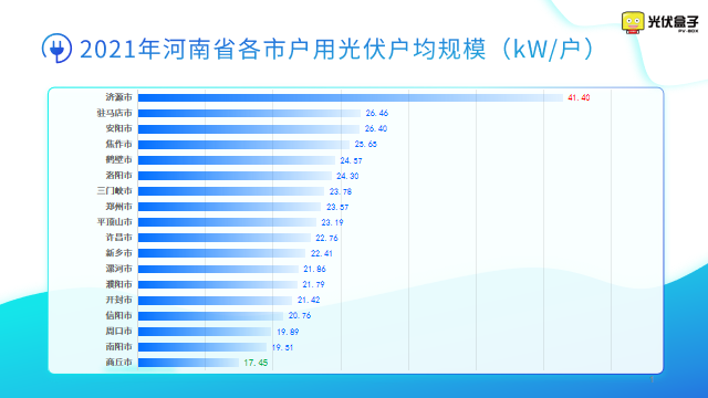 濟(jì)源市是河南省戶用光伏規(guī)模最高的市,為41.4kW/戶。